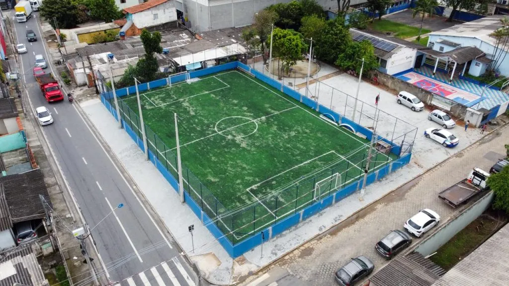 A obra substituiu a quadra de areia por uma estrutura moderna, com fechamento lateral, iluminação em LED e melhores condições de uso para a população. O projeto também incluiu a implantação de um espaço recreativo para crianças e a criação de vagas de estacionamento.